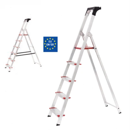ESCALERA DE TIJERA DOMESTICA CON PORTAHERRAMIENTAS – COMODA 05