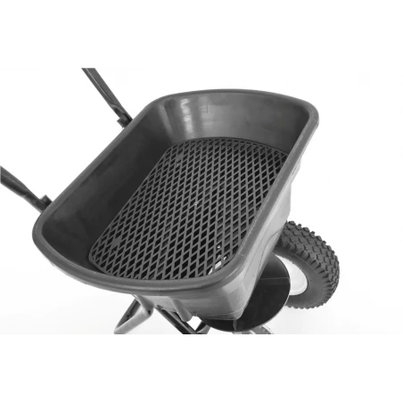 O reservatório comporta 29 litros de sementes, fertilizantes ou sal e é equipado com uma peneira para evitar entupimento do mecanismo de espalhamento. Uma tampa de tanque também está incluída.