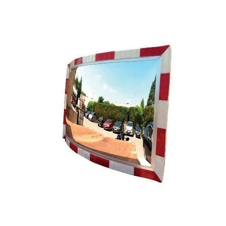 ESPEJO DE SEGURIDAD Para controlar y vigilar tu zona de aparcamiento y tienda. Aplicación exterior e interior. Bandas reflectantes. Fijación mural incluida. DATOS TÉCNICOS Modelo: MR3054RB Distancia Visión: 10 metros Dimensiones: 610 x 430 mm Peso Neto: 2,65 kg