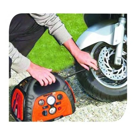 Equipado con 3 boquillas para inflar balones, neumáticos y colchonetas.