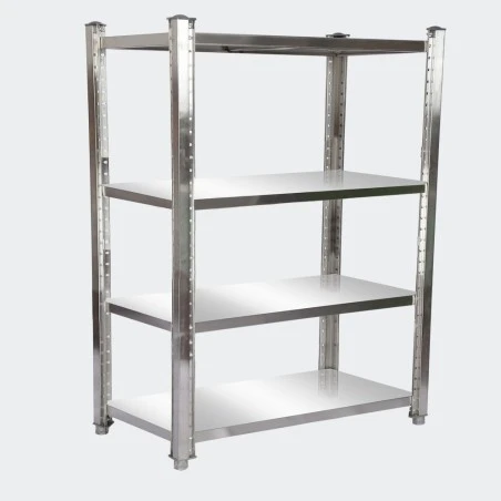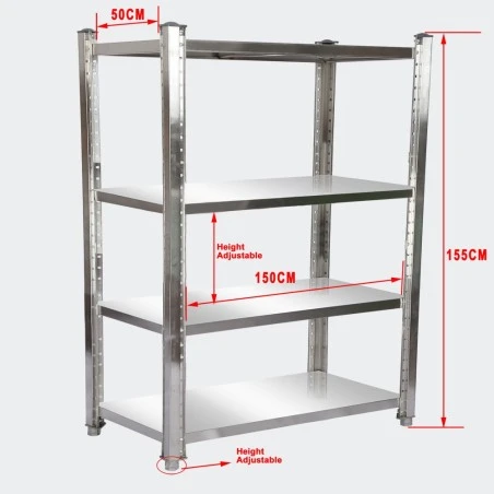 Estante estable de acero inoxidable con 4 estantes, ideal para usar en el área de restauración.