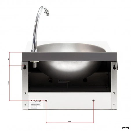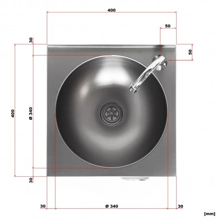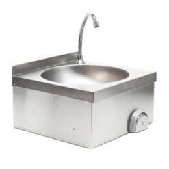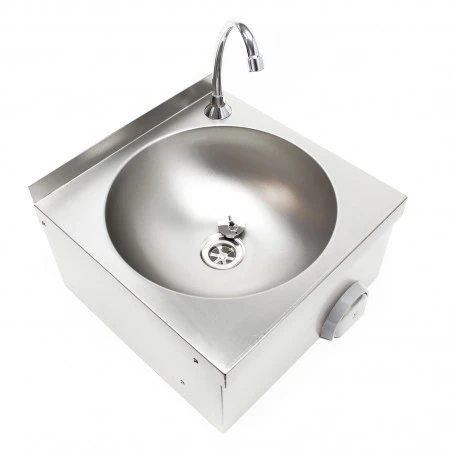 Está fabricado en acero inoxidable y destaca por su fácil y rápida limpieza. Por lo tanto, el lavabo también se puede usar idealmente en áreas de comedores u hospitales.