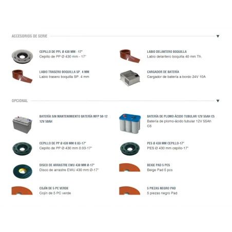 RPM/presión en las escobillas 150/18 kg/39,68 lbs