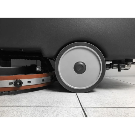 Ruedas grandes que no dejan huellas y rodillo trasero resistente para desplazamientos.