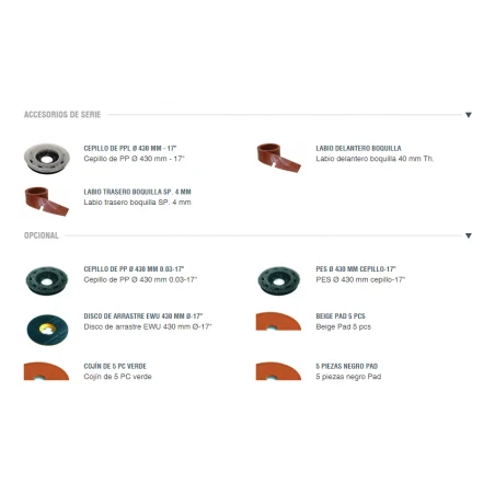 RPM/presión en las escobillas 150/18 kg/39,68 lbs