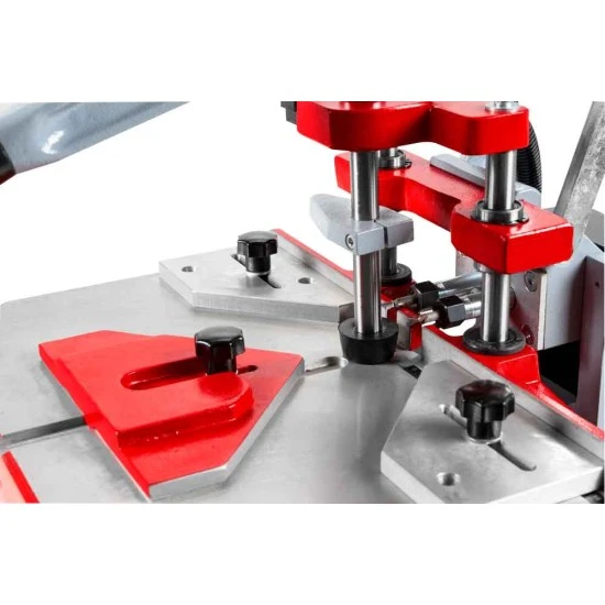 La fresadora neumática de doble chavetero HOLZMANN KNF2PNEU_230V con dos husillos de fresado es ideal para realizar dos uniones de chaveteros por carrera de trabajo. Se pueden realizar marcos de cuadros, marcos de ventanas y muchas otras conexiones de marcos de forma rápida y sencilla. Fresando, inserte el elemento de conexión de cola de milano correspondiente y las dos piezas procesadas se unen entre sí (no se necesita pegamento)