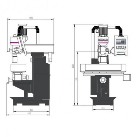 Fresadora de utillaje ( Tipo torreta) Optimum MT 50 con motor de dos velocidades, visualizador DPA 2000 y motorización eje X
