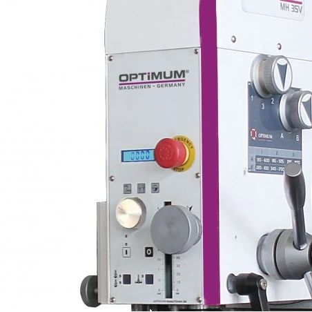 Fresadora y taladradora robusta con caja de cambios. Panel de control protegido contra el agua y la suciedad.