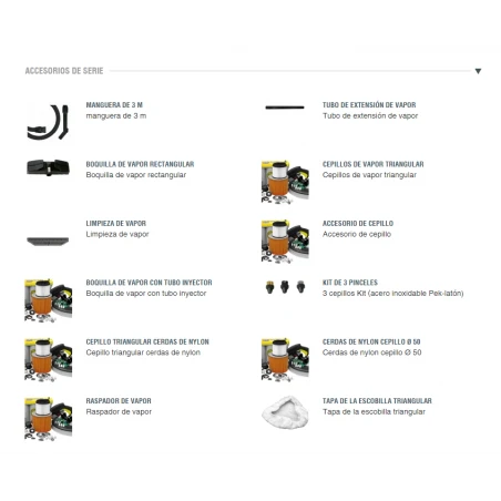 Espesor 25/10.Dispositivo para utilizar productos químicos y detergentes mezclados con vapor de agua.