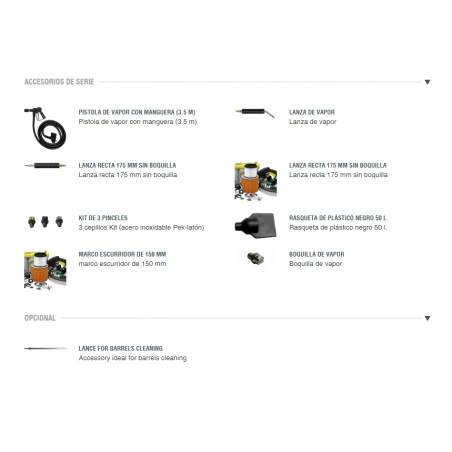 La gama GV incluye generadores de vapor eléctricos que desarrollan vapor continuo de hasta 10 atmósferas de presión y con temperaturas de 180ºC.
