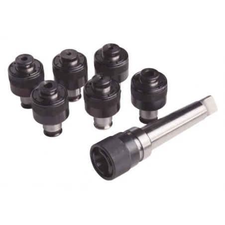 Portapinzas para roscar con juego de 6 pinzas de cambio rápido.