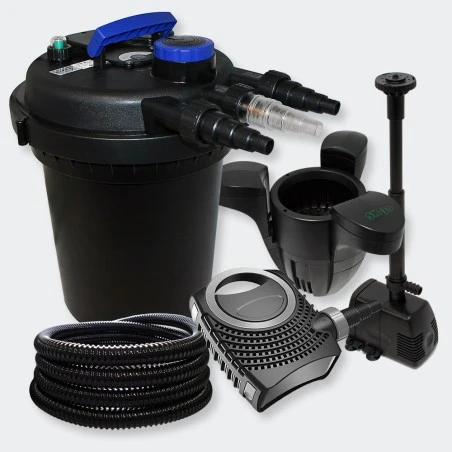 Este juego de estanque, especialmente diseñado para estanques de jardín pequeños de hasta 6000 l, ofrece la gama completa de accesorios para su estanque de jardín.
