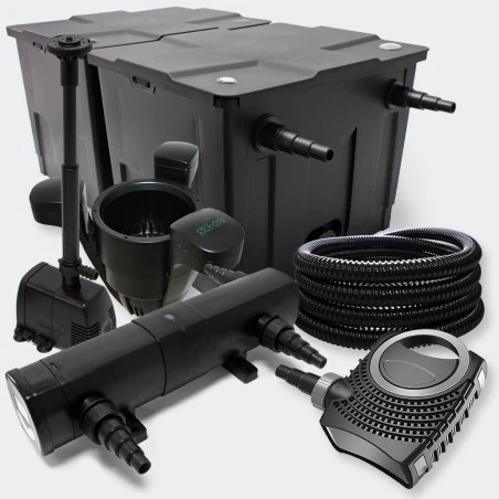 Este juego de estanques, especialmente diseñado para estanques medianos a grandes de 60000l, ofrece la gama completa de accesorios para su estanque de jardín.