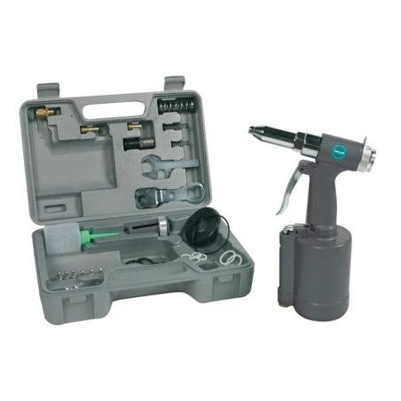 Kit remachadora en un práctico estuche de plástico. Ideal para uso en trabajos de bricolaje, en la fabricación