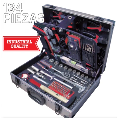 1 carraca con 13 vasos de 1/2” 10 a 32 mm con accesorios – 1 llave ajustable 250 mm