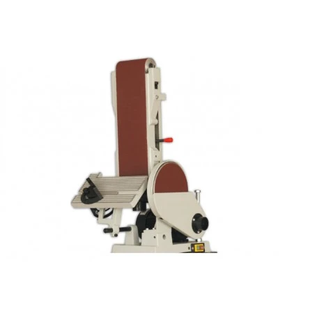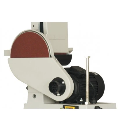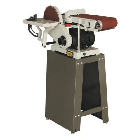 Lijadora con bancada equipada con banda de 150 mm y disco de 225 mm.