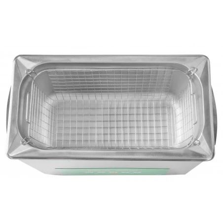 El limpiador ultrasonidos profesional MQT 6.0 cuenta con un grifo de vaciado que permite la salida del líquido sin entrar en contacto con la piel. La tapa de la limpiadora ultrasons está fabricada con acero inoxidable y reduce los ruidos del procedimiento. Esta tapa además acelera el proceso de calentamiento del líquido de limpieza. El recipiente de acero inoxidable cuenta con una línea de demarcación de 2/3, que permite al usuario conocer en todo momento la cantidad óptima de líquido de limpieza que debe ser utilizada. La cubeta de acero inoxidable del baño ultrasonidos profesional MQT 6.0, en la que puede colocar los utensilios para limpiar, se suministra con el pedido.
