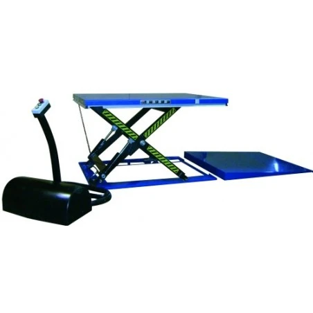 Mesa elevadora de tijera eléctrica de 2.000 Kg con altura regulable a fin de lograr una posición de trabajo cómoda en todas las situaciones, en puestos de montaje, en puestos de control, puesto de paletización, salida de máquina, etc. Controlada mediante una botonera con seta de emergencia y un bastidor de seguridad para detener el descenso en caso de encontrar un obstáculo. Movimientos suaves. Estructura de acero rectangular para asegurar la estabilidad y la resistencia de la mesa. Barra de seguridad. Motor con protección IP54. Válvula regulable. Ejes desmontables. Rodillos estabilizadores. Tensión de alimentación 380V. Marcado CE. Fabricación a medida, consúltenos.