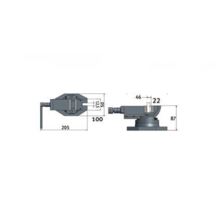 Giratoria de 0° a 90°. Base giratoria en 360°. Bocas de sujeción templadas inductivamente, rectificadas e intercambiables. Peso neto: 3,4 kg.