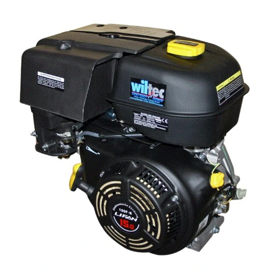 El motor tiene arranque de retroceso, embrague húmedo, arranque eléctrico, carburador, tubo de escape, el tanque y el filtro de aire está incluido también.