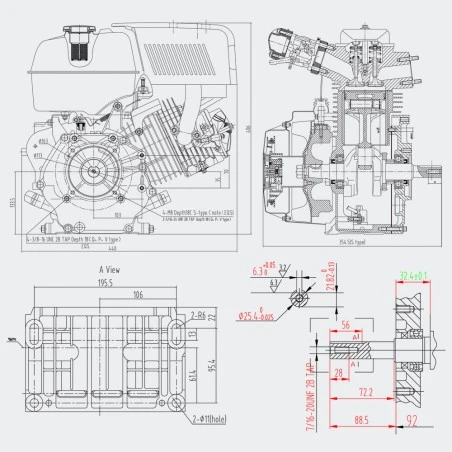Tenga en cuenta que el motor tiene el eje tipo (Q2 = 25.40 mm), el motor se puede cambiar fácilmente. El motor tiene arranque manual.