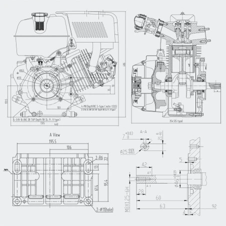 El motor tiene arranque de retroceso, embrague húmedo, arranque eléctrico, carburador, tubo de escape, el tanque y el filtro de aire está incluido también.