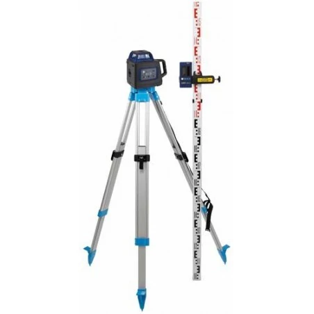 Contiene láser rotativo 1210HV, receptor láser con soporte, mando a distancia, batería recargable con cargador, placa de soporte de pared/suelo, objetivo reflector, gafas láser rojo, trípode 178680104 y jalón telescópico de nivelación.