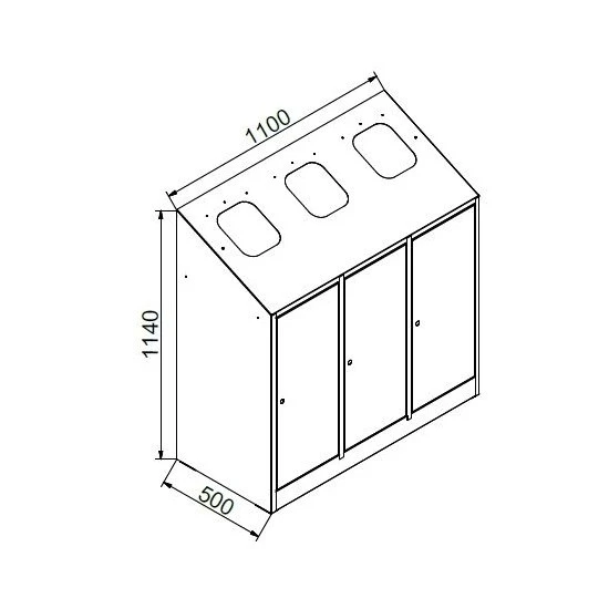Su construcción es resistente, con materiales de excelente calidad. Tiene cerradura con llave en las tres puertas, para garantizar mayor orden y también seguridad. En cuanto a su diseño, al ser inclinada la cara superior, las personas no podrán dejar los residuos, sino que deberán colocarlos en el espacio correspondiente. Esta característica ayuda a mantener aseados los alrededores.