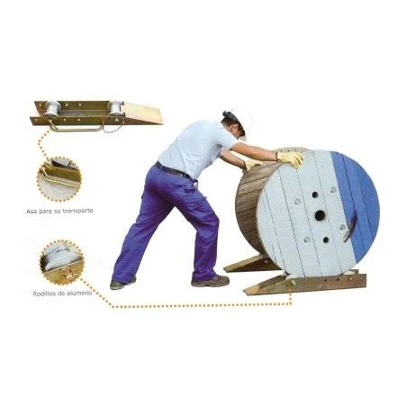 Conjunto formado por 2 patines de rodadura con rodillos de aluminio, utilizable con bobinas pequeñas y medianas, sin importar el ancho de la misma, ya que los patines son independients.