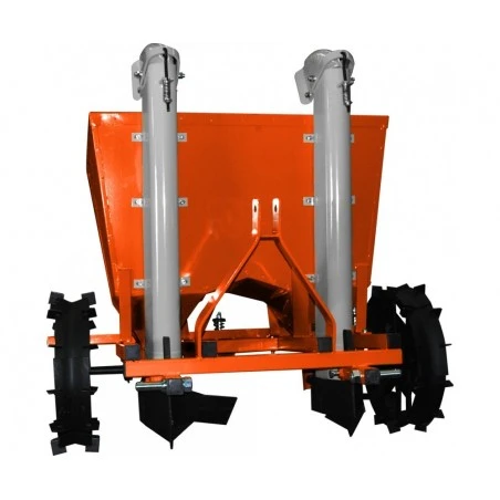 Dos filas de siembra de patatas con tres aporcadoras especiales para enterrar.