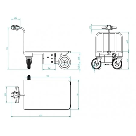 Vehículo eléctrico de fácil maniobrabilidad en espacios reducidos y muy útil en hospitales, para carga y arrastre de 400 Kg.