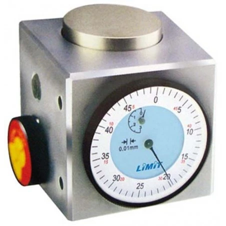 La base magnética facilita el ajuste vertical u horizontal. El dispositivo incorpora un mecanismo de calibración integrado. Dimensiones 50 x 50 mm.
