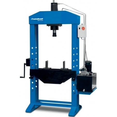 Prensa hidráulica pesada y maciza para talleres, sobre pedestal, con bomba eléctrica y cilindros de