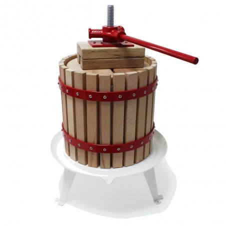 Las uvas deben romperse antes. Esto se puede hacer con un molino de fruta o con la mano. Las frutas de pepita deben ser limpiadas antes. La cantidad de rendimiento de zumo, depende del contenido de agua de la fruta y no el esfuerzo del operador. Dependiendo del tipo de fruta, se podrá realizar el proceso fácilmente con una mano.
