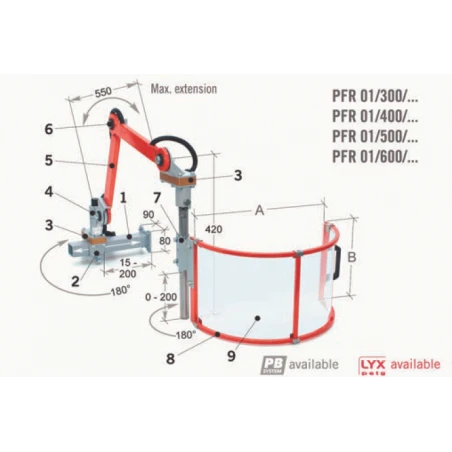 Clásicos universales con brazos articulados muy versátiles y de colocación inmediata. Protege al operario del contacto directo con el eje de rotación y la proyección vertical de virutas y refrigerante.