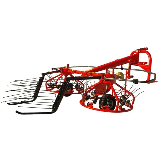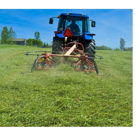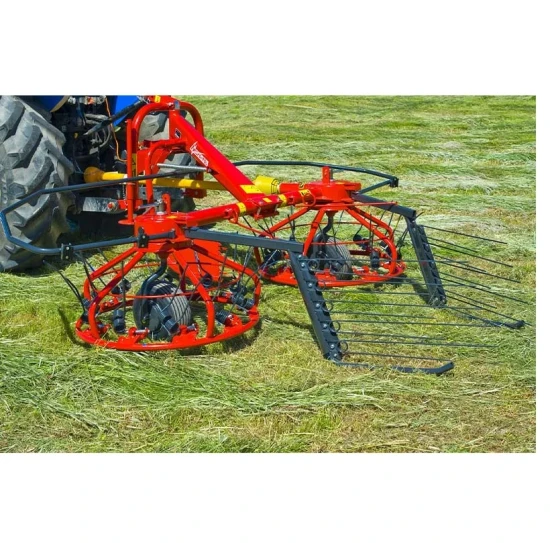 El rastrillo hilerador destaca por la precisión del área de trabajo, es ajustable para la altura del rotor y la anchura de los bancos.