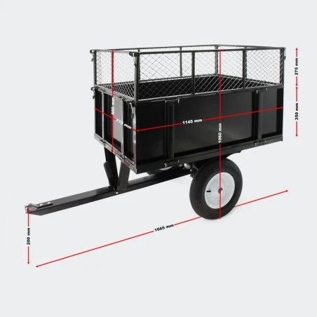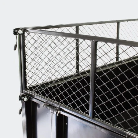 El remolque está equipado con laterales extraíbles y también provisto de lados de malla desmontables..