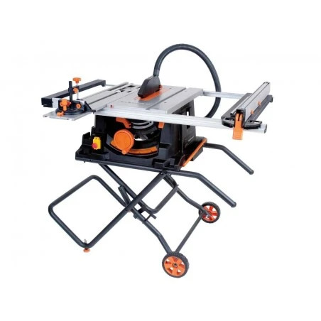 MESA DE CORTE profesional y versátil. Corta fácilmente acero, aluminio, madera y plástico con un solo disco. Excelente en el corte de maderas finas, realiza cortes transversales precisos, manipula materiales de recubrimiento, corta zócalos, ranuras, espigas y sierra maderas grandes o gruesas. Incluye guía de inglete de sujeción rápida y guía de corte para máxima estabilidad. Altura precisa del disco y ajuste de ángulo. Carro deslizante suave y seguro.