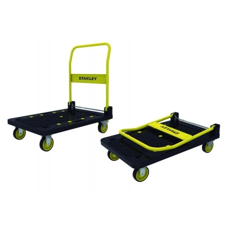 Para cargas pesadas, con la plataforma de polipropileno y el asa de tubo de acero. Los principales puntos de tensión de plástico están hechos de nylon resistente. Mango de acero completamente plegable para mover cargas. Diseño compacto, ideal para almacenes comerciales, venta al por menor, tiendas y servicios de entrega.