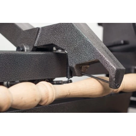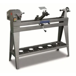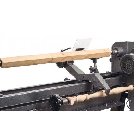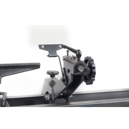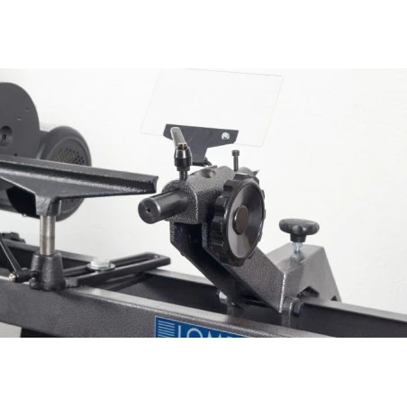 Torno para madera de sobremesa equipado con variador de velocidades por poleas.