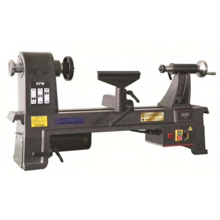 Torno para madera de sobremesa, equipado con variador electrónico de velocidad (potenciómetro). Fabricado en fundición,equipado
