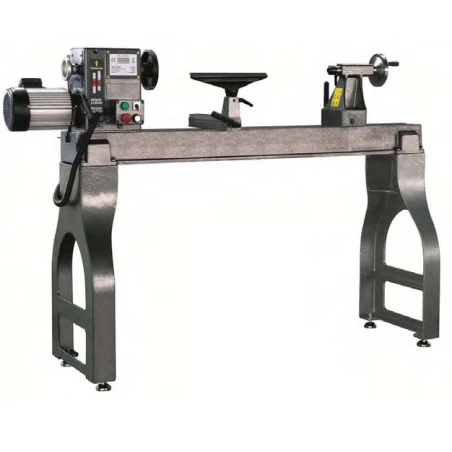Torno para madera equipado con variador de frecuencia por inverter “Delta” ,velocidades desde 0 a 3.200 r.p.m, visor digital de velocidad, construido en fundición gris.