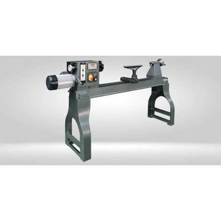 Torno para madera equipado con variador de frecuencia por inverter “Delta” ,velocidades desde 0 a 3.200 r.p.m, visor digital de velocidad, construido en fundición gris.