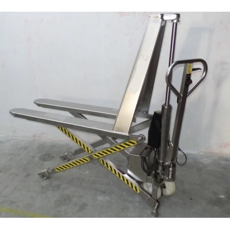 La transpaleta manual de tijera 1.000 kg inoxidable que te ofrecemos en Maquituls facilita y agiliza el trabajo, evitando los transbordos innecesarios. Además, permite ser utilizada como mesa de trabajo. Dispone de ruedas directrices provistas de estabilizadores, con los que poder inmovilizar la transpaleta mientras se usa a una altura superior de 400mm sobre el suelo. Lo que le aporta un extra de seguridad para quienes usen esta transpaleta tijera manual.