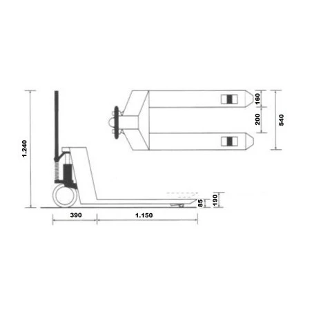 Traspaleta con elevación manual, Alta capacidad de carga hasta 4.000Kg.