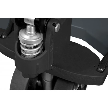 Transpaleta para uso profesional, con mecanismo de elevación hidráulico.