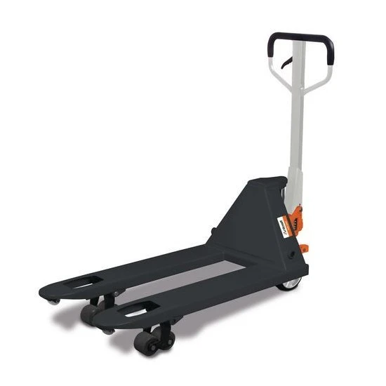 Su operación es intuitiva y eficiente gracias a su palanca de una mano para el control de la elevación, el descenso y la posición neutral. Su bomba hidráulica con pistón chapado en cromo duro y válvula de escape de presión, garantiza un rendimiento confiable y duradero. Con su diseño ergonómico y opciones de horquilla, esta transpaleta se adapta a diversas necesidades de manipulación de materiales.