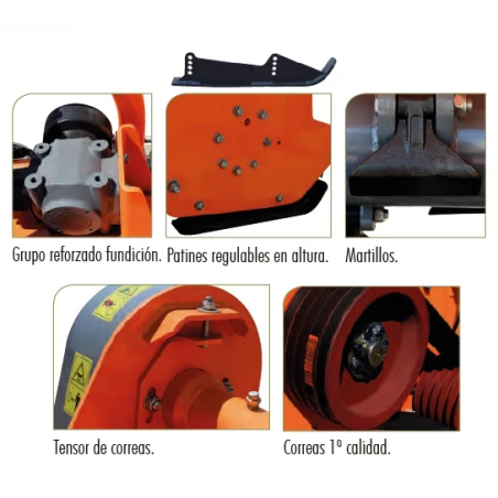 Trituradora con desplazamiento hidráulico. Resto de poda de hasta 10 cm.