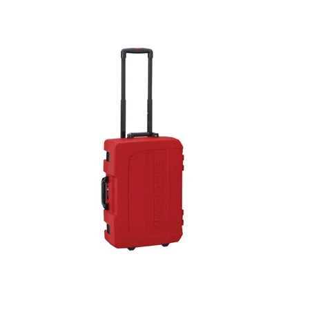 Maleta de servicio de plástico, de 113 piezas, resistente con asa telescópica, ruedas de goma y cerradura de combinación y asas de transporte en los dos lados.