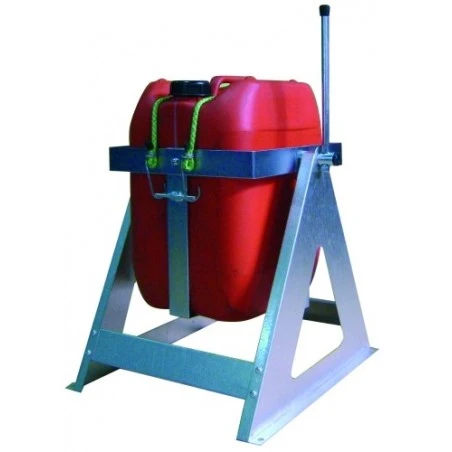 Volteador de bidones de 20-25 litros. Fabricado en acero cincado y galvanizado. Capacidad para bidones hasta 285 mm.